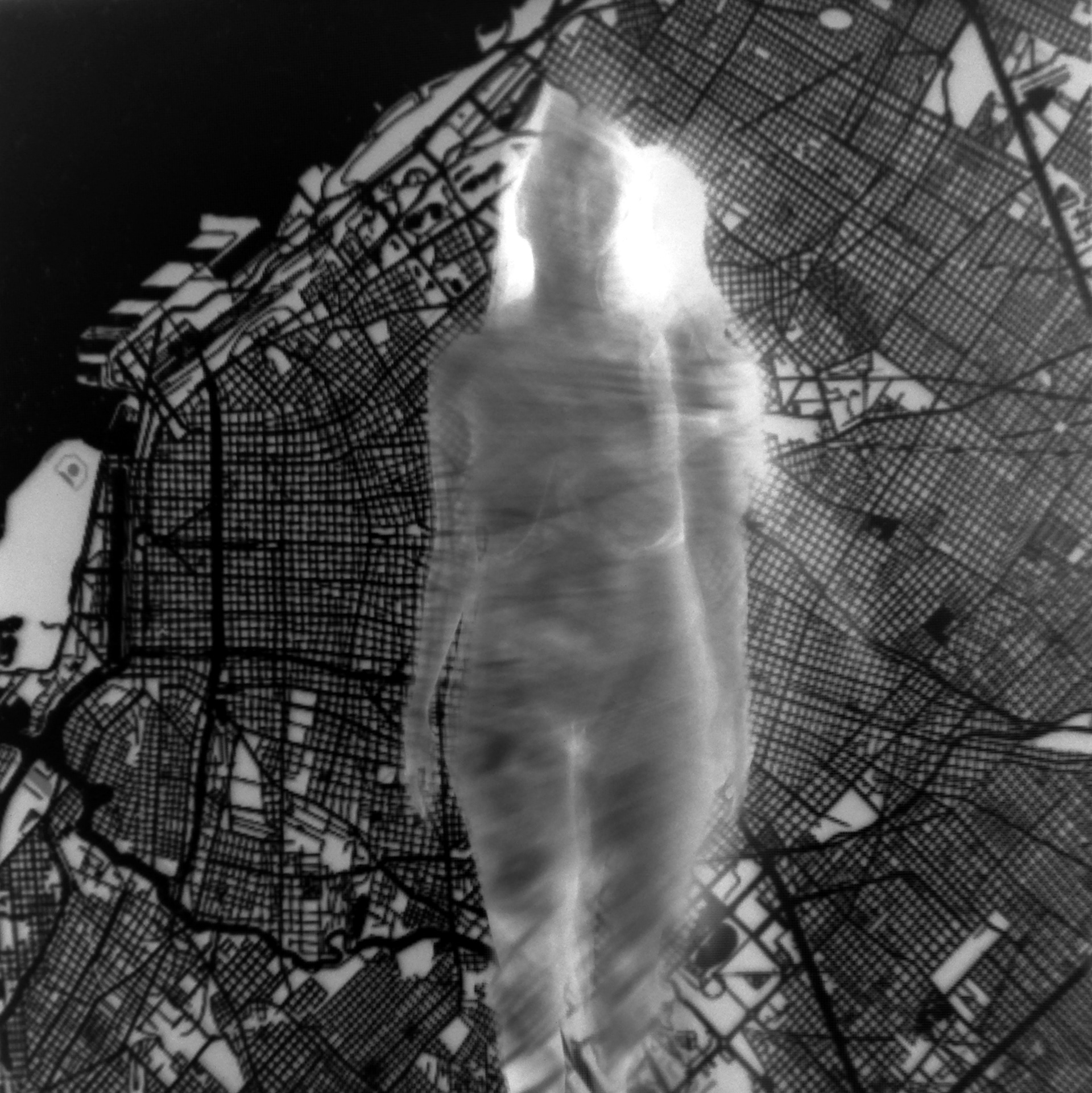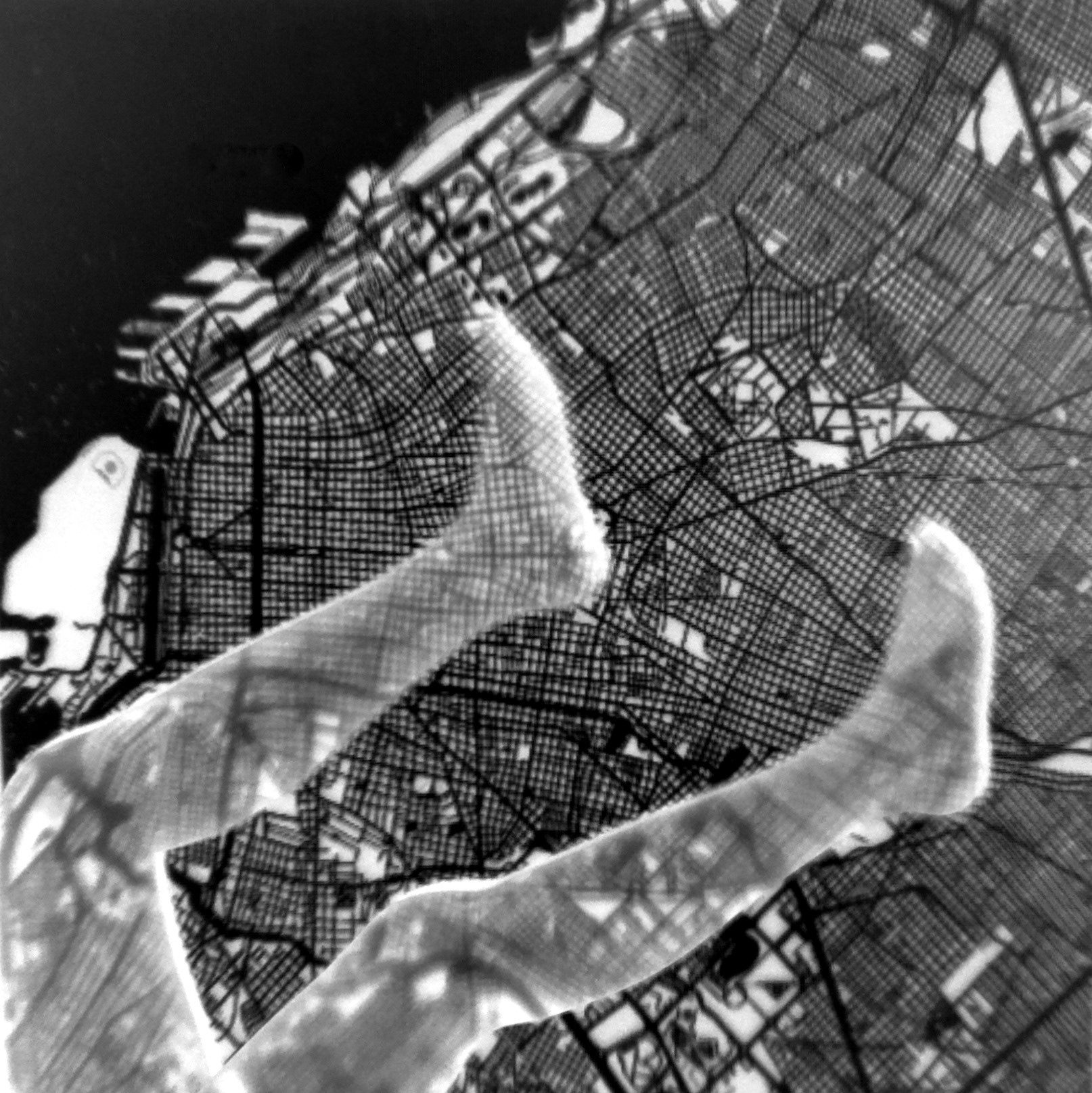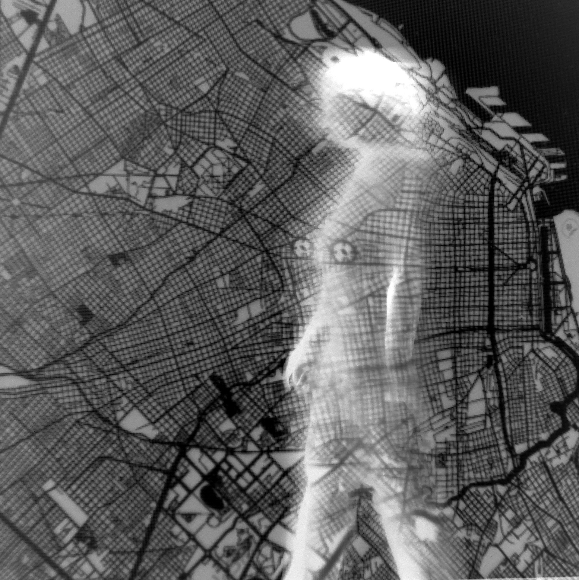 After undergoing various medical studies—ultrasounds and X-rays—I began this body of work, composed of self-portraits that engage in dialogue with maps of the city of Buenos Aires. The images are taken into the negative in search of a latent image that might reveal what was happening within me at that particular moment, configuring a new internal cartography.
